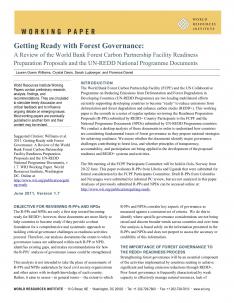 This working paper is the eighth in a series of regular updates reviewing the Readiness Preparation Proposals (R-PPs) submitted by REDD+ Country Participants to the FCPF and the National Programme Documents (NPDs) submitted by UN-REDD Programme countries to the UN-REDD Programme. The analysis is based on a desktop review of each R-PP and NPD in order to understand how countries are considering fundamental issues of forest governance during the readiness phase. We assess whether the documents identify major governance challenges contributing to forest loss, and whether principles of transparency, accountability, participation, and coordination are being applied in the development of REDD+ institutions, systems, and plans.