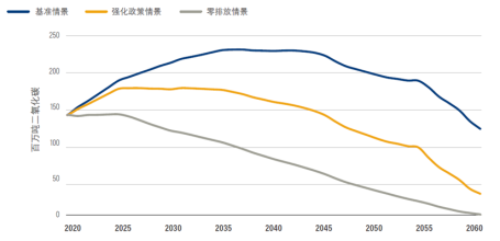 在“零排放情景”下,通过大幅度提升建筑设备能效、电力清洁化改造、利用低排放燃料或可再生能源发电等途径,大湾区建筑领域将提前至2025年实现碳达峰,排放峰值为1.44亿吨,在2020—2060年期间累计减少49.1亿吨的碳排放。