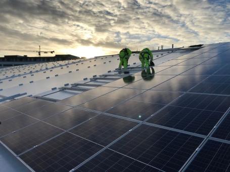 集成整合中心(Mass Consolidation Centre, MCC)屋顶的太阳能电池板 | 图源:Stockholm Royal Seaport Development Office