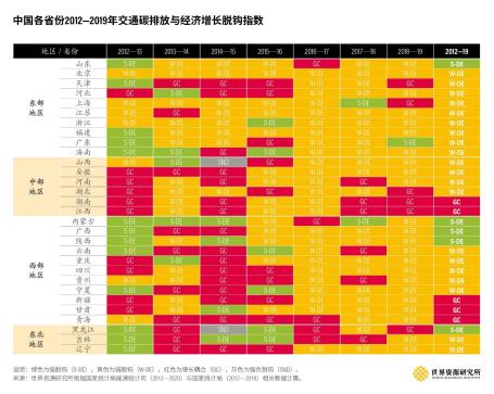中国各省份2012-2019年交通碳排放与经济增长脱钩指数 | 图源:WRI